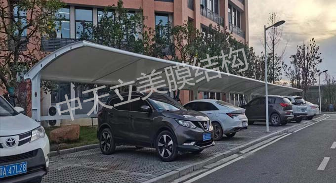 鄂州二中膜結構車棚項目已完工,該項目分6處地方,有膜結構汽車停車棚,膜結構電動車停車棚,總面積2906m2。